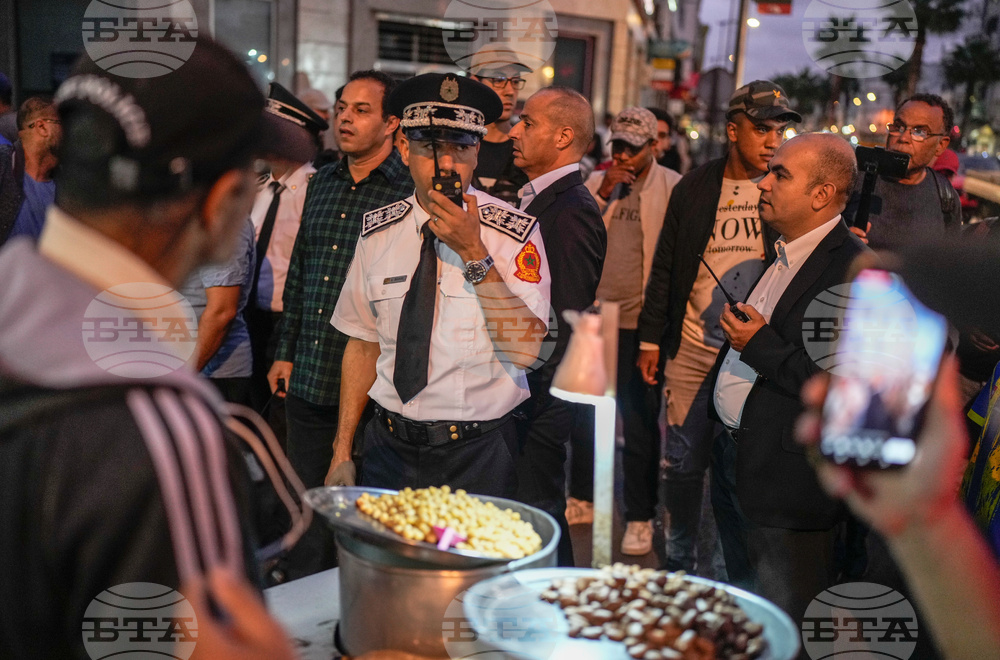 Security forces stand guard as they anticipate a youth led protest calling for education and health reforms, in Casablanca, Morocco, Monday, Sept. 29, 2025. (AP Photo/Mosa'ab Elshamy)