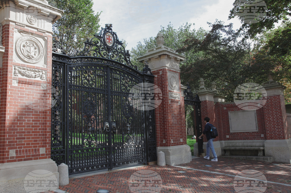 A student walks at a gate to Brown University, Monday, Sept. 29, 2025, in Providence, R.I. (AP Photo/Kimberlee Kruesi)