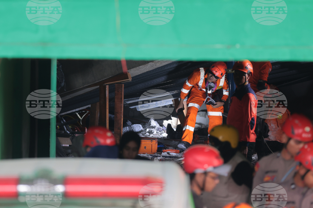 Rescuers search for victims after a building under construction collapsed, at an Islamic boarding school in Sidoarjo, East Java, Indonesia, Tuesday, Sept. 30, 2025. (AP Photo/Trisnadi)