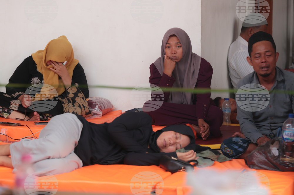 People wait as rescue work is underway after a building under construction collapsed at an Islamic boarding school in Sidoarjo, East Java, Indonesia, Tuesday, Sept. 30, 2025. (AP Photo/Trisnadi)