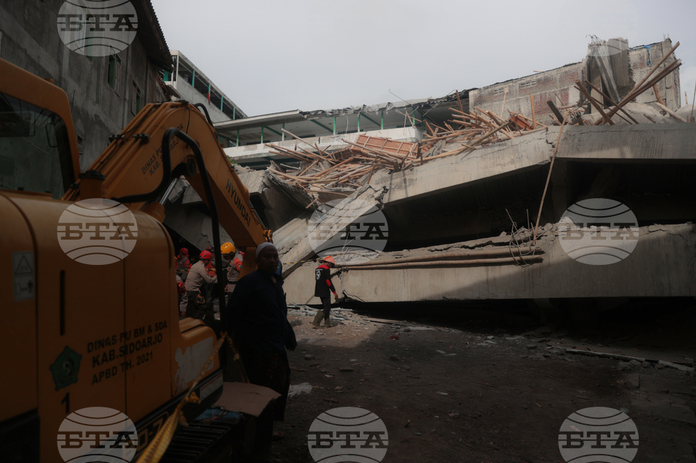 Rescuers search for victims at the site where a building under construction collapsed at an Islamic boarding school in Sidoarjo, East Java, Indonesia, Tuesday, Sept. 30, 2025. (AP Photo/Trisnadi)