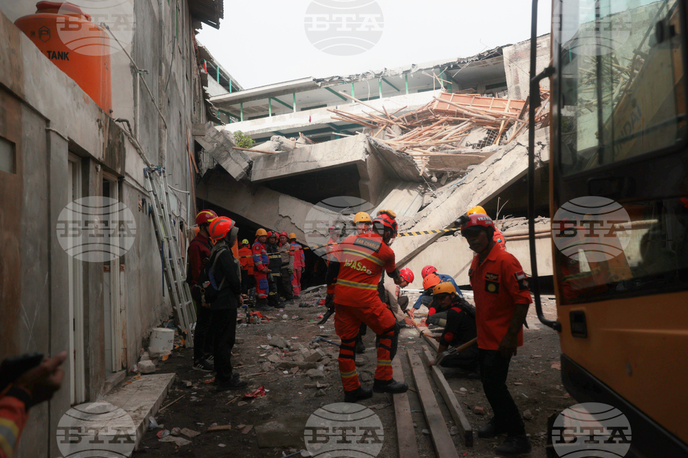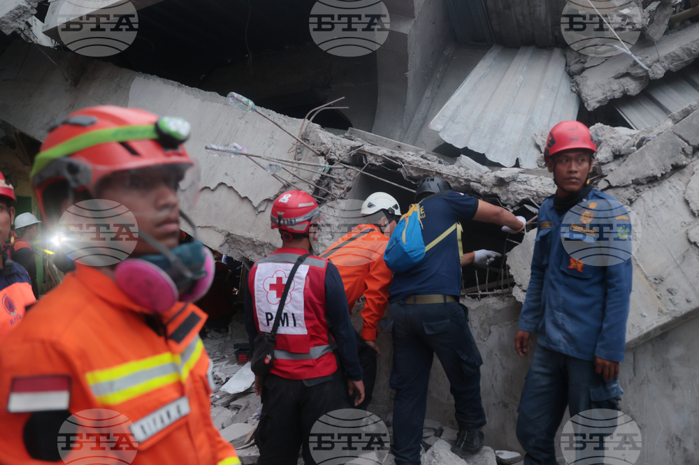 Rescuers search for victims survivors after a building under construction collapsed, at an Islamic boarding school in Sidoarjo, East Java, Indonesia, Tuesday, Sept. 30, 2025. (AP Photo/Trisnadi)