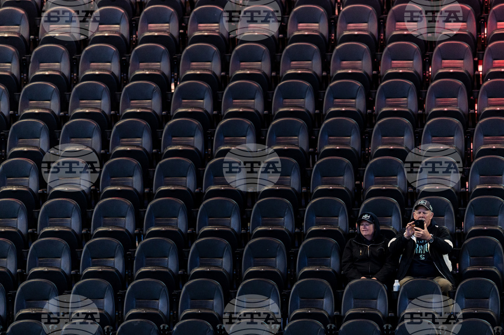 Fans sit in the stands before an NHL hockey game between the Seattle Kraken and the Calgary Flames, Monday, Sept. 29, 2025, in Seattle. (AP Photo/Maddy Grassy)