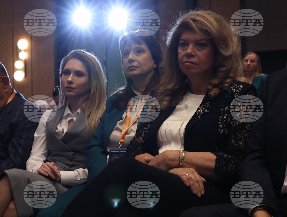 София (30 септември 2025) в хотел "Хилтън“ се провежда национална конференция „Компас 2025“ с акцент върху големите проекти в българската енергетика, разглеждани през призмата на геополитиката, националната сигурност и дипломацията. На снимката: заместник-омбудсманът Мария Филипова, омбудсманът на Република България Велислава Делчева и вицепрезидентът Илиян Йотова.