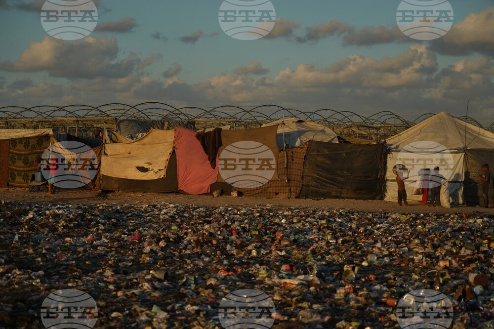Displaced Palestinians sit beside their tent near a landfill where they are taking shelter, in Khan Younis, southern Gaza Strip, Tuesday, Sept. 30, 2025. (AP Photo/Jehad Alshrafi)