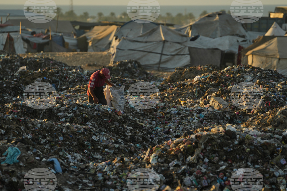 Displaced Palestinians search for firewood and plastic in a landfill beside the makeshift tent camp where they are taking shelter, in Khan Younis, southern Gaza Strip, Tuesday, Sept. 30, 2025. (AP Photo/Jehad Alshrafi)