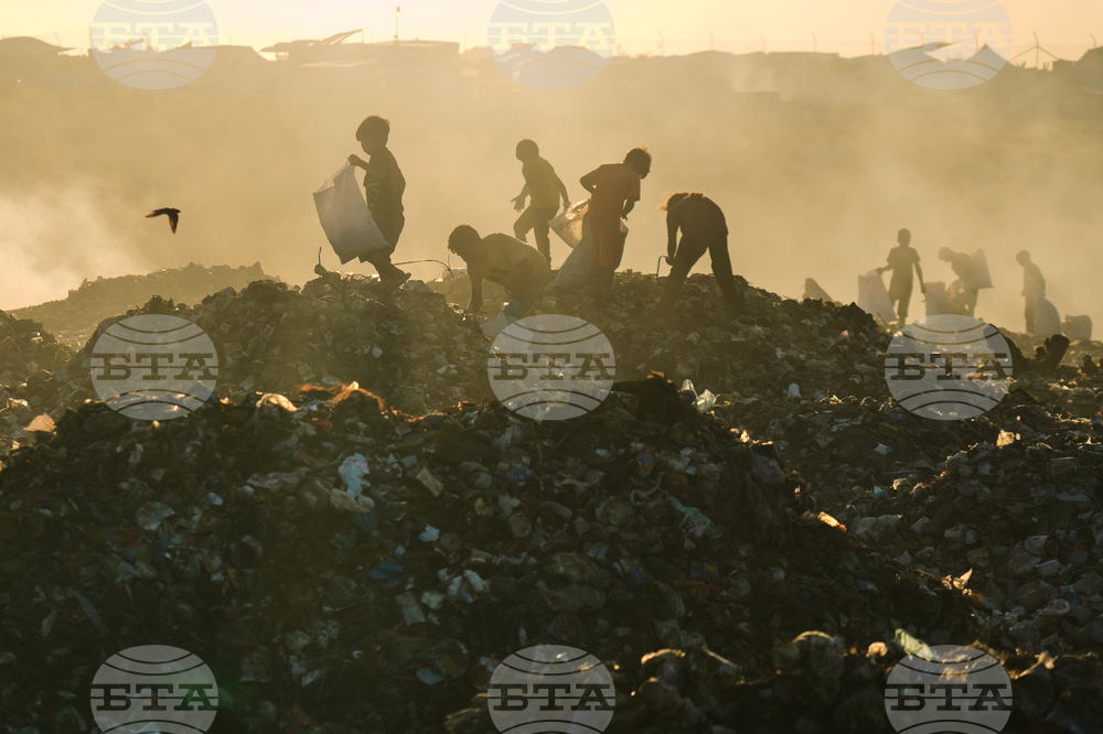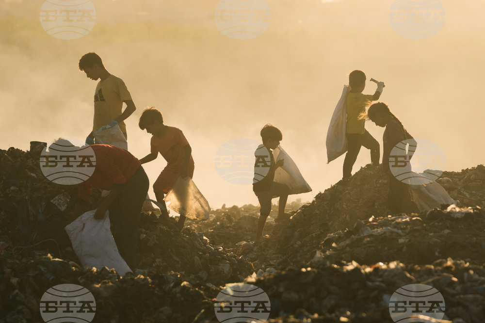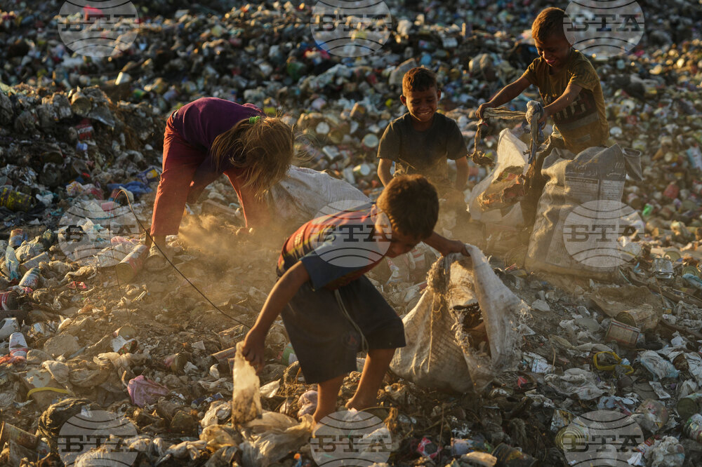 Displaced Palestinian children search for firewood and plastic in a landfill beside the makeshift tent camp where they are taking shelter, in Khan Younis, southern Gaza Strip, Tuesday, Sept. 30, 2025. (AP Photo/Jehad Alshrafi)