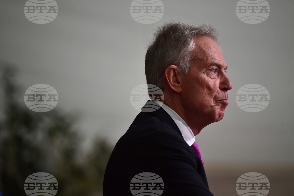 FILE - Former British Prime Minister Sir Tony Blair reacts as he gives a speech at Hillsborough Castle for the Gala dinner to mark the 25th anniversary of the Belfast/Good Friday Agreement, in Belfast, Northern Ireland, April 19, 2023. (Charles McQuillan/Pool Photo via AP, File)