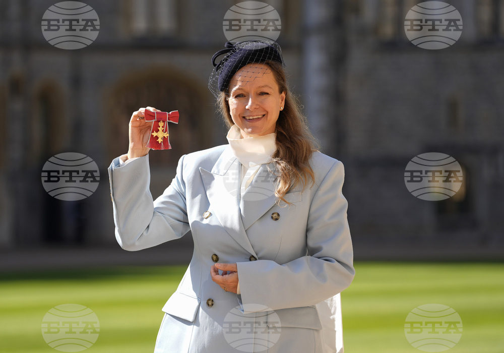 Actress Samantha Morton poses for a photo after being made an Officer of the Order of the British Empire at an investiture ceremony at Windsor Castle, in Windsor, England, Tuesday, Sept. 30, 2025. (Andrew Matthews/Pool Photo via AP)