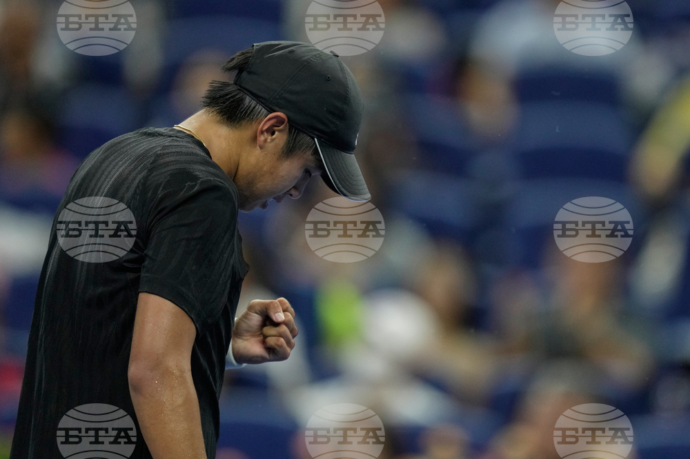 Learner Tien of the United States celebrates after defeating Russia's Daniil Medvedev in the men's singles semifinal match for the China Open tennis tournament, in Beijing, China, Tuesday, Sept. 30, 2025. (AP Photo/Mahesh Kumar A.)