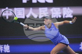 Amanda Anisimova, of the United States reaches for the ball during the women's singles match against Karolina Muchova, of the Czech Republic, in the China Open tennis tournament, in Beijing, Tuesday, Sept. 30, 2025. (AP Photo/Andy Wong)