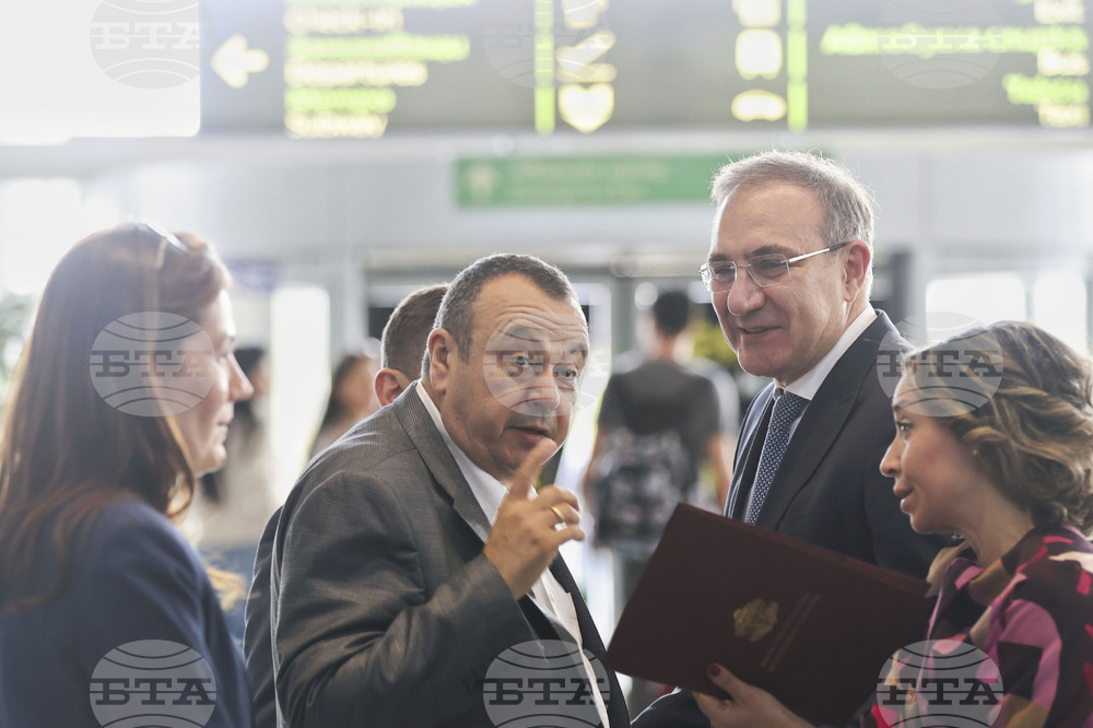 София (30 септември 2025) На Летище "Васил Левски" пристигна световния шампион от първенството по лека атлетика за параолимпийци Ружди Ружди. Сред посрещачите са голяма част от парламентарната група на ДПС-Ново начало и министърът на труда и социалната политика Борислав Гуцанов. На снимката: народният представител Хамид Хамид (трети вдясно) и министърът на труда и социалната политика Борислав Гуцанов (втори вдясно).