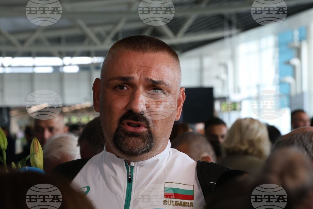 София (30 септември 2025) На Летище "Васил Левски" пристигна световния шампион от първенството по лека атлетика за параолимпийци Ружди Ружди. На снимката: треньорът на паралимпийския шампион Радостин Тодоров.