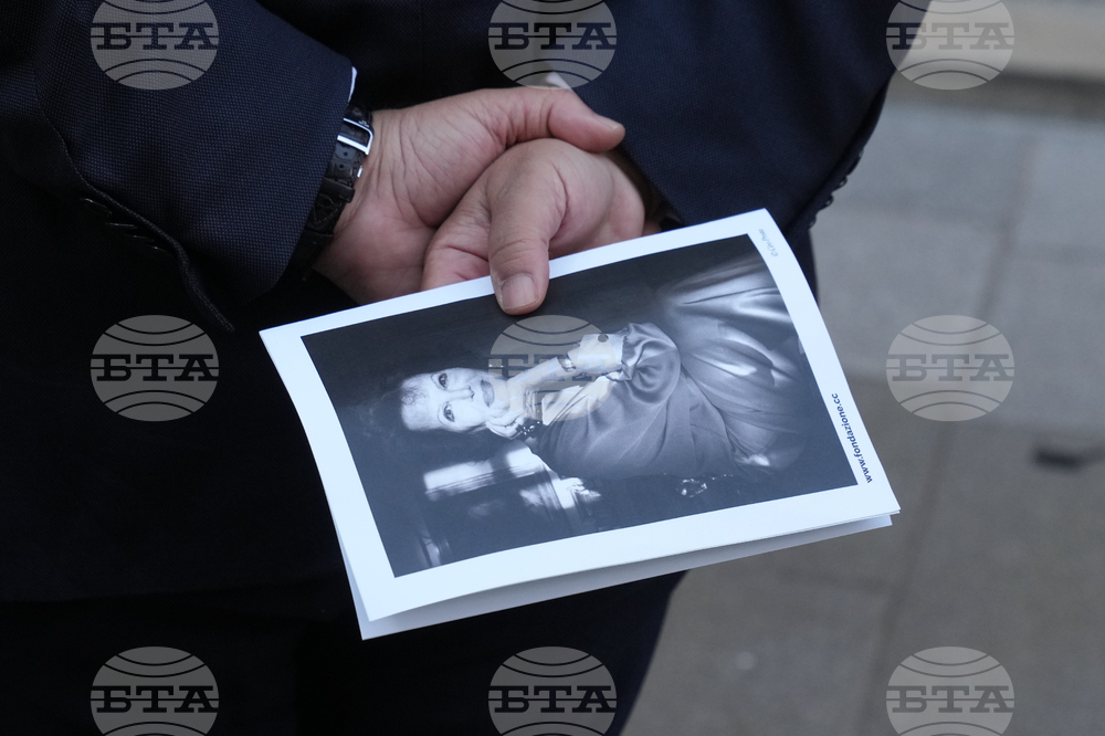 A man shows a photograph of Claudia Cardinale before the funeral ceremony for actor Claudia Cardinale, Tuesday, Sept. 30, 2025 in Paris. (AP Photo/Michel Euler)
