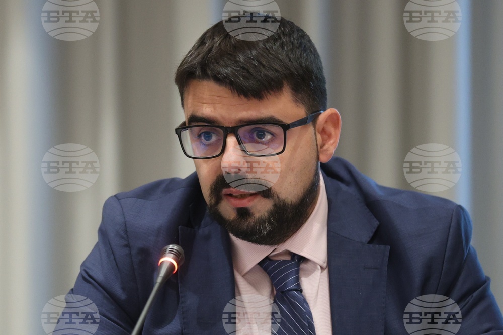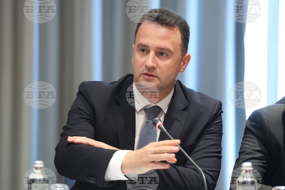 София (30 септември 2025) Кръгла маса „Ускорен енергиен преход: Политики и иновации за устойчиво развитие до 2040 г.”, се провежда в столичния „Гранд Хотел Милениум”. На снимката (от ляво надясно): председателят на парламентарната Комисия по бюджет и финанси Делян Добрев, директорът на Програма „Енергетика и климат” в Центъра за изследване на демокрацията Мартин Владимиров и министърът на енергетиката Жечо Станков.