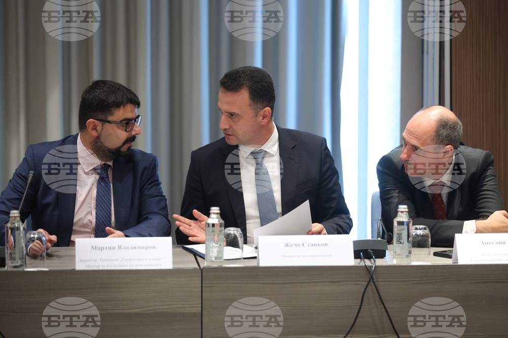 София (30 септември 2025) Кръгла маса „Ускорен енергиен преход: Политики и иновации за устойчиво развитие до 2040 г.”, се провежда в столичния „Гранд Хотел Милениум”. На снимката (от ляво надясно): Цветомир Николов от Центъра за изследване на демокрацията, директорът на Програма „Енергетика и климат” в Центъра за изследване на демокрацията Мартин Владимиров и министърът на енергетиката Жечо Станков.