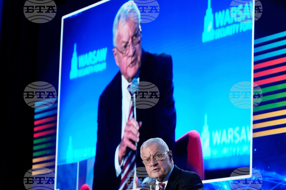 US Special Envoy for Ukraine Keith Kellogg speaks on stage during a panel discussion with the title 'Securing Europe: Transatlantic Strategies in a Time of War and Uncertainty' on the second and last day of the Security Forum in Warsaw, Poland, Tuesday, Sept. 30, 2025. (AP Photo/Czarek Sokolowski)