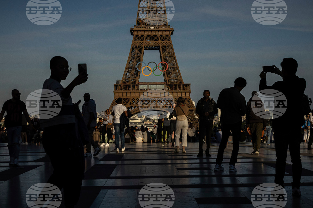 FILE - The Olympic rings are seen on the Eiffel Tower, June 7, 2024 in Paris. (AP Photo/Aurelien Morissard, file)