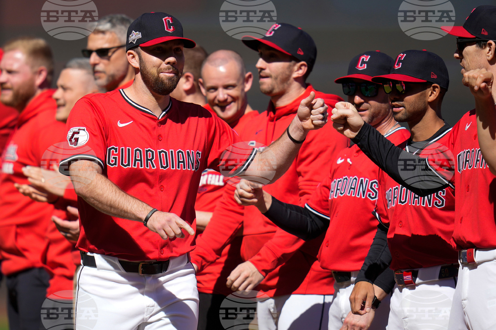 Cleveland Guardians' David Fry is introduced before Game 1 against the Detroit Tiger in the American League Wild Card baseball playoff series in Cleveland, Tuesday, Sept. 30, 2025. (AP Photo/Sue Ogrocki)