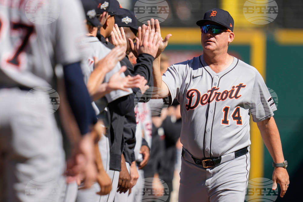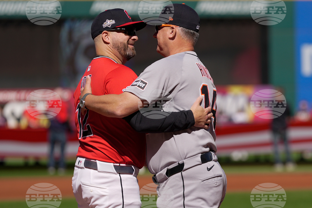 Detroit Tigers manager A.J. Hinch is introduced before Game 1 against the Cleveland Guardians in the American League Wild Card baseball playoff series in Cleveland, Tuesday, Sept. 30, 2025. (AP Photo/Sue Ogrocki)