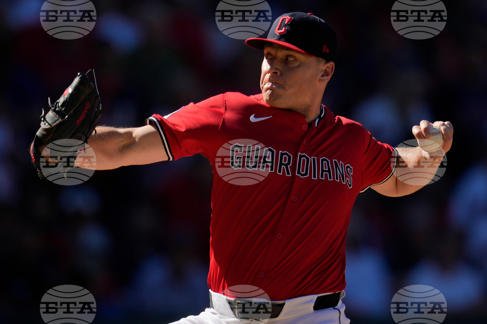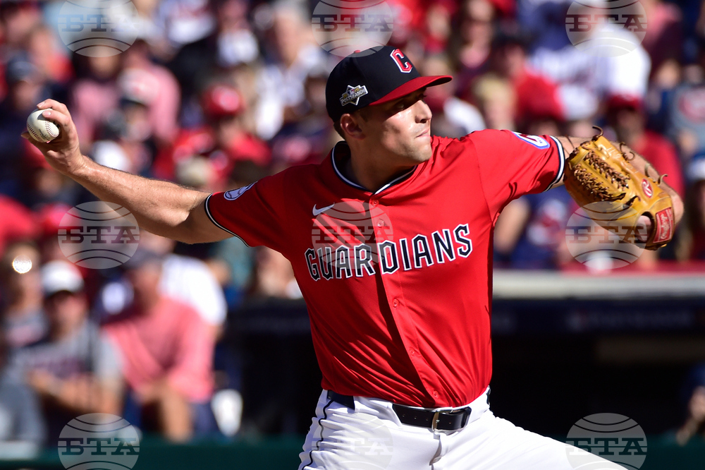 Cleveland Guardians pitcher Erik Sabrowski throws in the eighth inning of Game 1 of the American League Wild Card baseball playoff series against the Detroit Tigers in Cleveland, Tuesday, Sept. 30, 2025. (AP Photo/Sue Ogrocki)