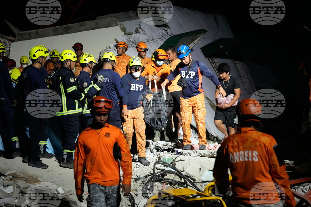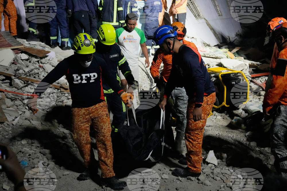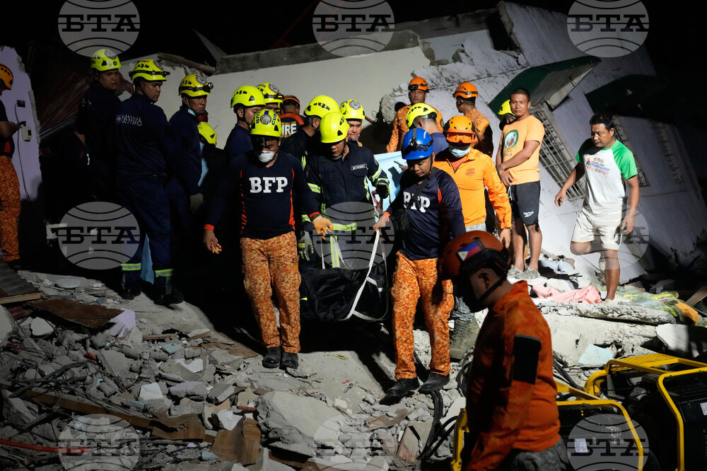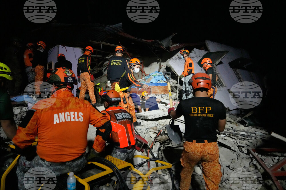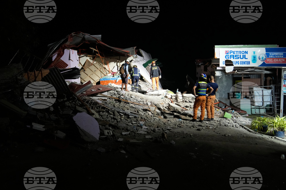 Rescuers search for survivors underneath rubble in Bogo city, Philippines, Wednesday, Oct. 1, 2025. (AP Photo/Aaron Favila)