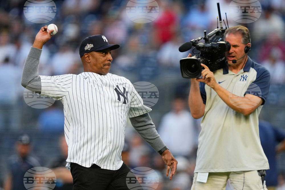 Former New York Yankees player Willie Randolph throws out the first pitch before Game 1 of an American League wild-card baseball playoff series between the New York Yankees and the Boston Red Sox, Tuesday, Sept. 30, 2025, in New York. (AP Photo/Yuki Iwamura)