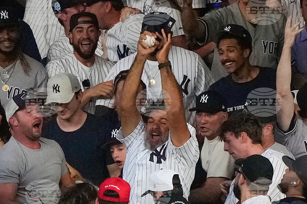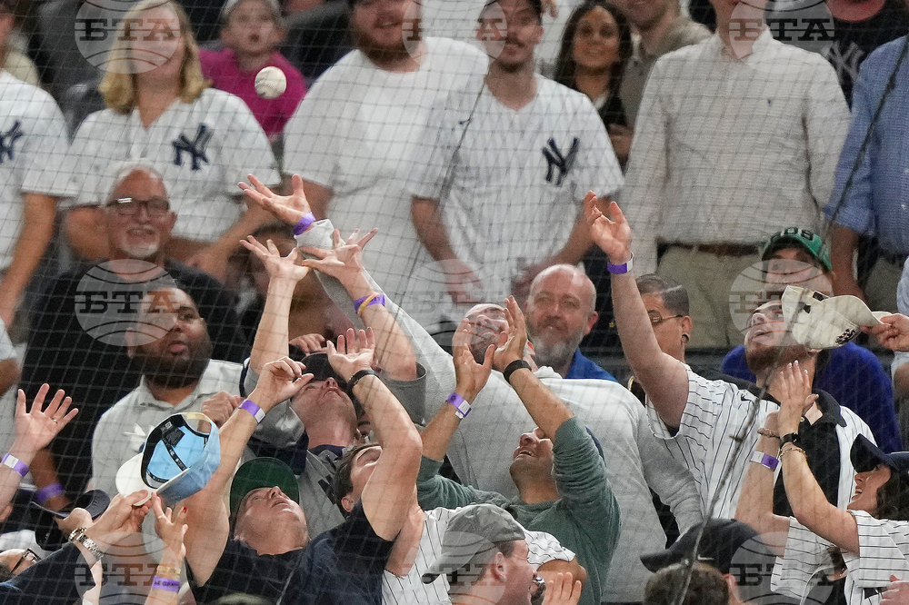 Fans reach for a foul ball during the seventh inning of Game 1 of an American League wild-card baseball playoff series between the New York Yankees and the Boston Red Sox, Tuesday, Sept. 30, 2025, in New York. (AP Photo/Yuki Iwamura)