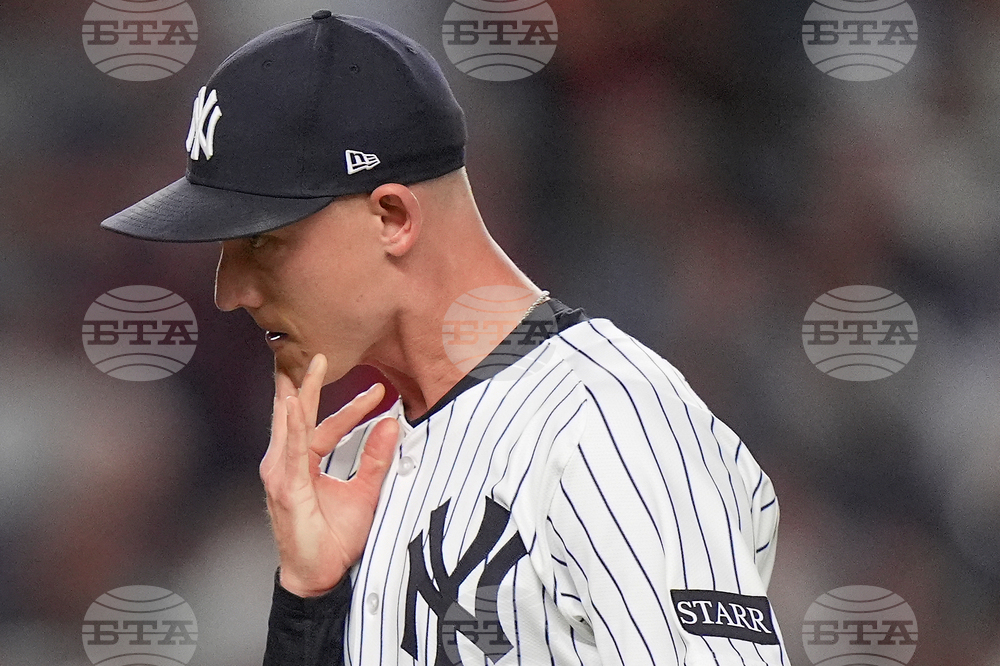 New York Yankees pitcher Max Fried (54) greets teammates before playing against the Boston Red Sox in Game 1 of an American League wild-card baseball playoff series, Tuesday, Sept. 30, 2025, in New York. (AP Photo/Frank Franklin II)