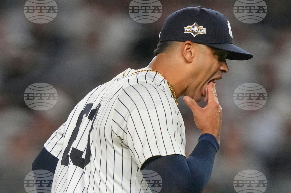 New York Yankees pitcher Max Fried reacts after striking out Boston Red Sox Jarren Duran with men on base to end the top of the fourth inning of Game 1 of an American League wild-card baseball playoff series, Tuesday, Sept. 30, 2025, in New York. (AP Photo/Frank Franklin II)