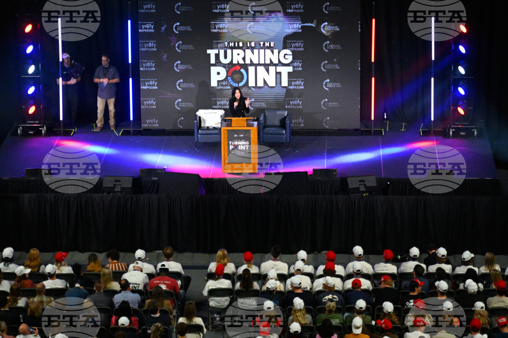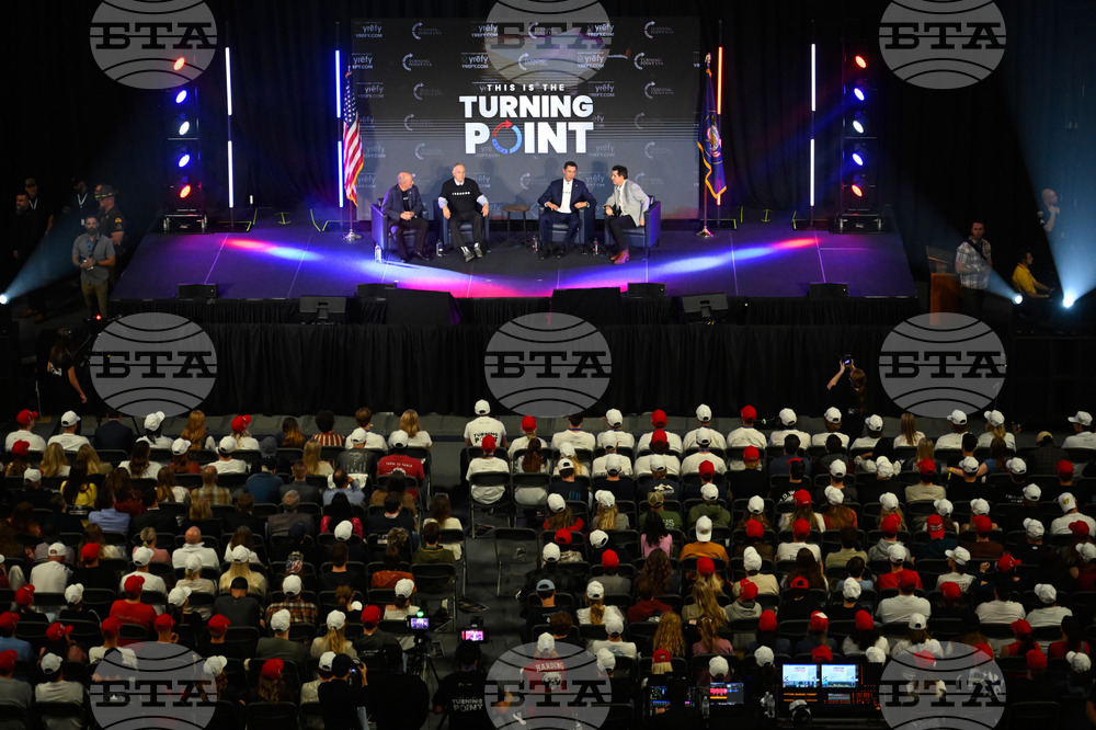 People attend a Turning Point USA rally at Utah State University, as a part of the organization's push to memorialize Charlie Kirk, Tuesday, Sept. 30, 2025, in Logan, Utah. (AP Photo/Alex Goodlett)