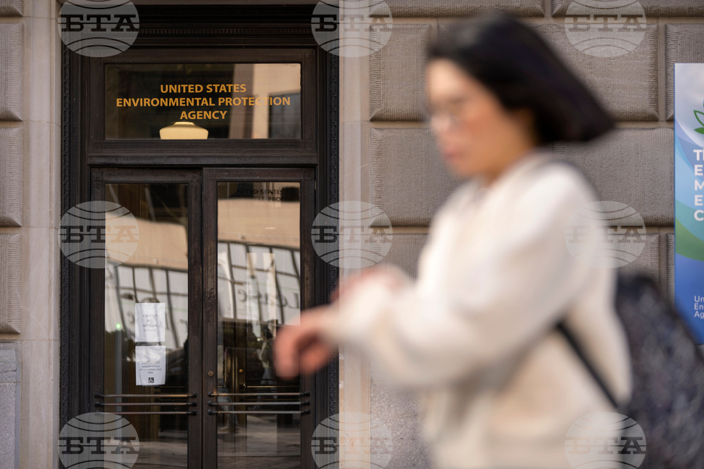 FILE - A person walks past the headquarters building of the Environmental Protection Agency, March 12, 2025, in Washington. (AP Photo/Mark Schiefelbein, File)