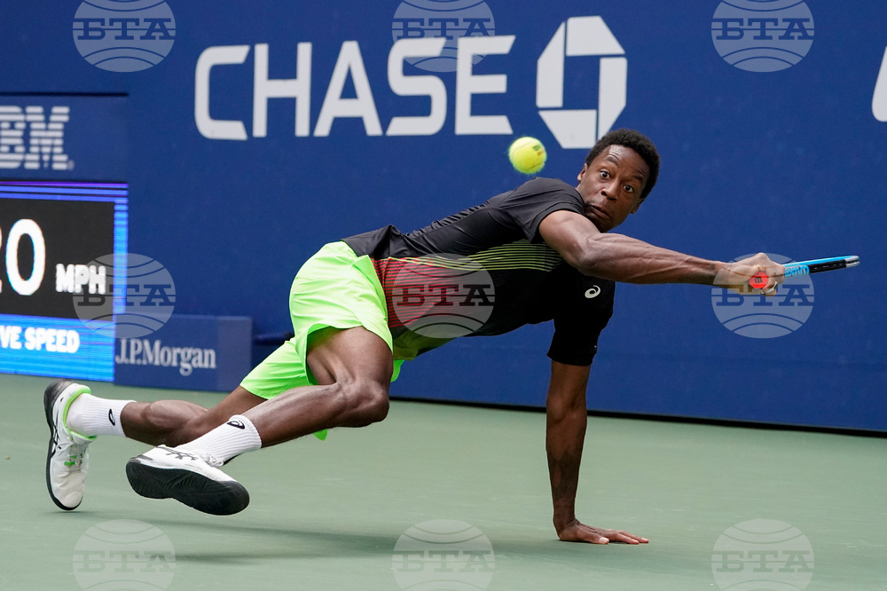 FILE - Gael Monfils, of France, returns a shot to Steve Johnson, of the United States, during the second round of the US Open tennis championships, Thursday, Sept. 2, 2021, in New York. (AP Photo/John Minchillo, File)