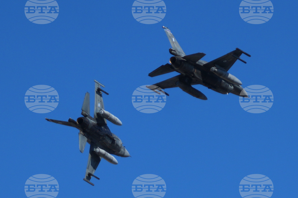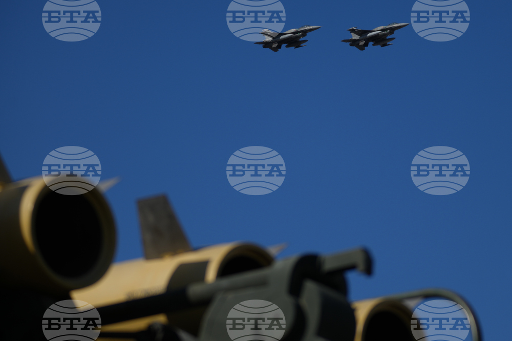 Greek F-16 fighter jets take part in a military parade marking the 65th anniversary of Cyprus' independence from British colonial rule, in capital Nicosia, Cyprus, Wednesday, Oct. 1, 2025. (AP Photo/Petros Karadjias)