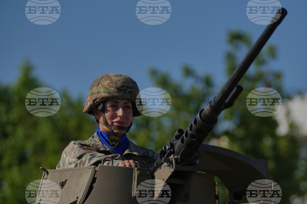 A Cyprus' female soldier on armored vehicle takes part in a military parade marking the 65th anniversary of Cyprus' independence from British colonial rule, in capital Nicosia, Cyprus, Wednesday, Oct. 1, 2025. (AP Photo/Petros Karadjias)