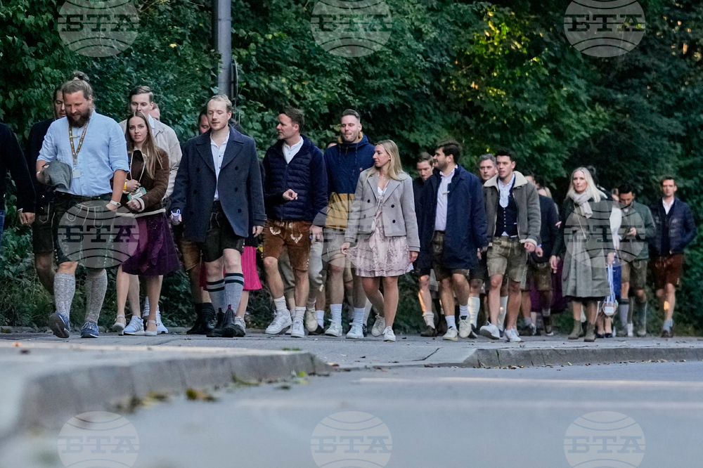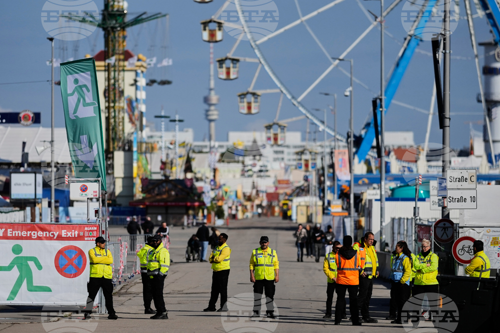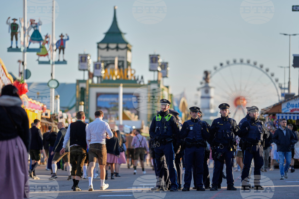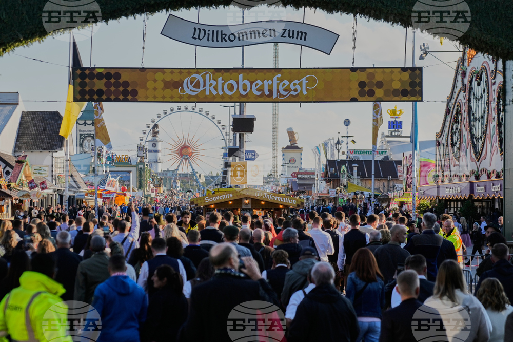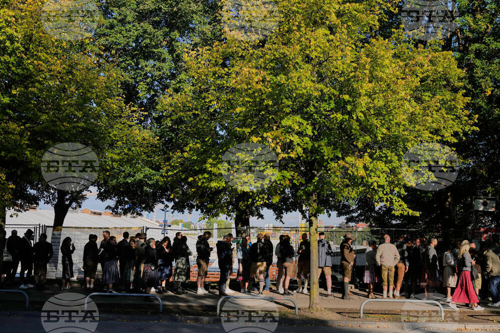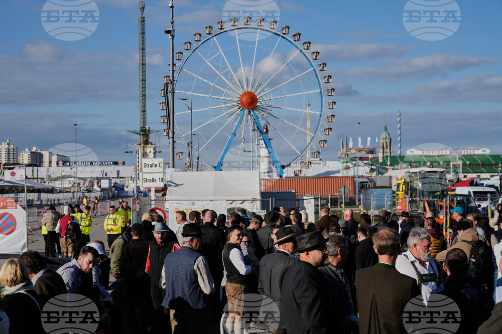 Visitors wait of the re-opening of the Oktoberfest that was closed since the morning after a bomb threatening in Munich, Germany, Wednesday, Oct.1, 2025. (AP Photo/Matthias Schrader)