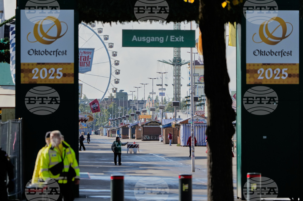 The Oktoberfest area that stays closed after a bomb threatening in Munich, Germany, Wednesday, Oct.1, 2025. (AP Photo/Matthias Schrader)