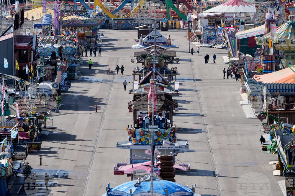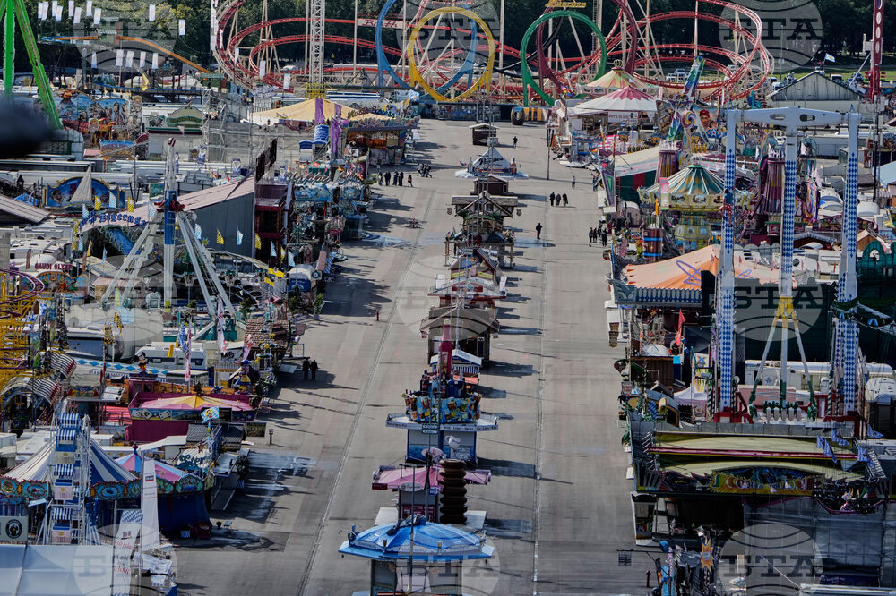 The empty Oktoberfest area that stays closed after a bomb threatening in Munich, Germany, Wednesday, Oct.1, 2025. (AP Photo/Matthias Schrader)