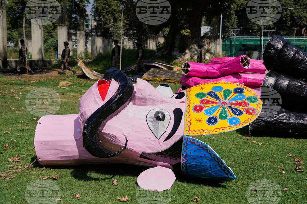 A man prepares effigies of demons from the Hindu epic Ramayana ahead of the Dussehra festival in Srinagar, Indian-controlled Kashmir, Wednesday, Oct. 1, 2025. (AP Photo/Mukhtar Khan)
