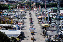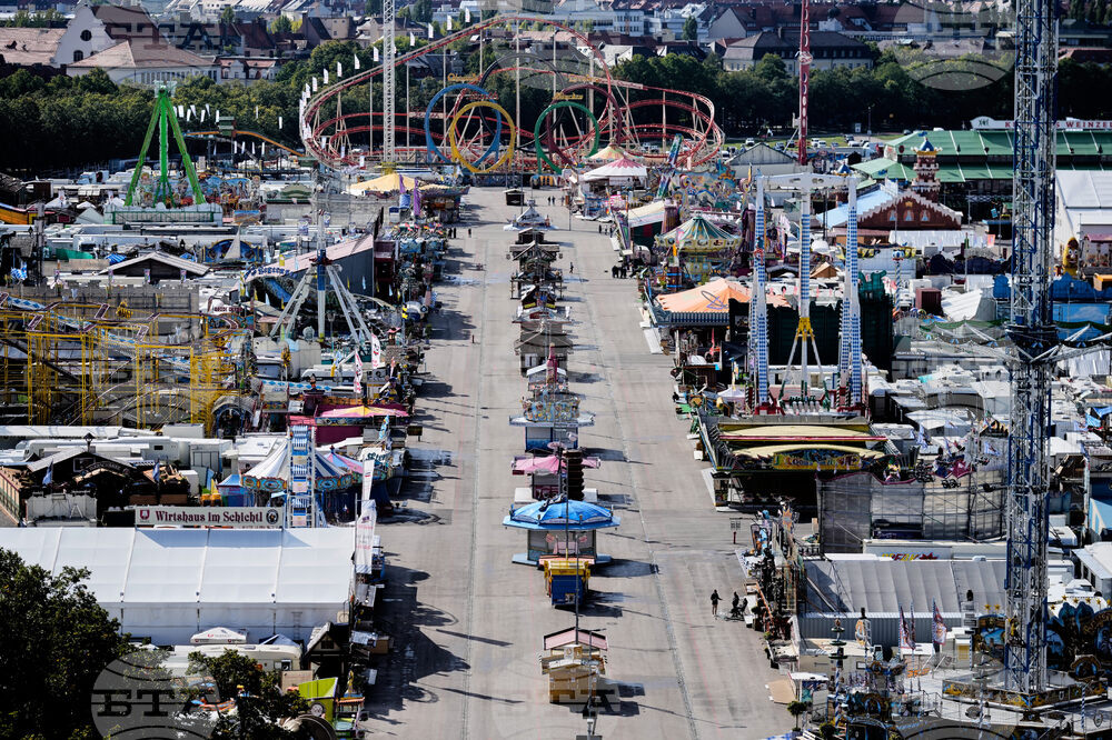 The empty Oktoberfest area that stays closed after a bomb threatening in Munich, Germany, Wednesday, Oct.1, 2025. (AP Photo/Matthias Schrader)