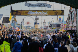 Visitors walk to the re-opening of the Oktoberfest that was closed since the morning after a bomb threatening in Munich, Germany, Wednesday, Oct.1, 2025. (AP Photo/Matthias Schrader)