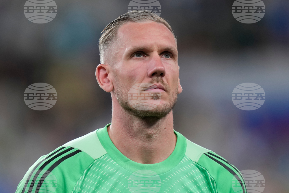 FILE - Sweden's goalkeeper Robin Olsen lines up ahead of the World Cup qualifying soccer match between Slovenia and Sweden at the Stozice stadium in Ljubljana, Slovenia, on Sept. 6, 2025. (AP Photo/Darko Bandic, File)