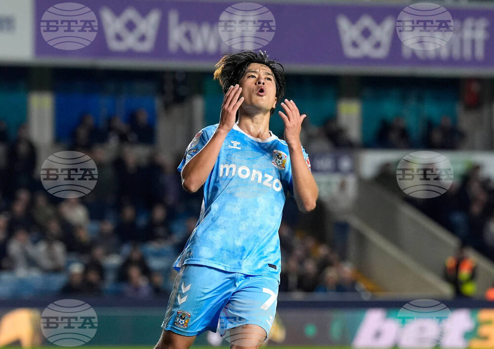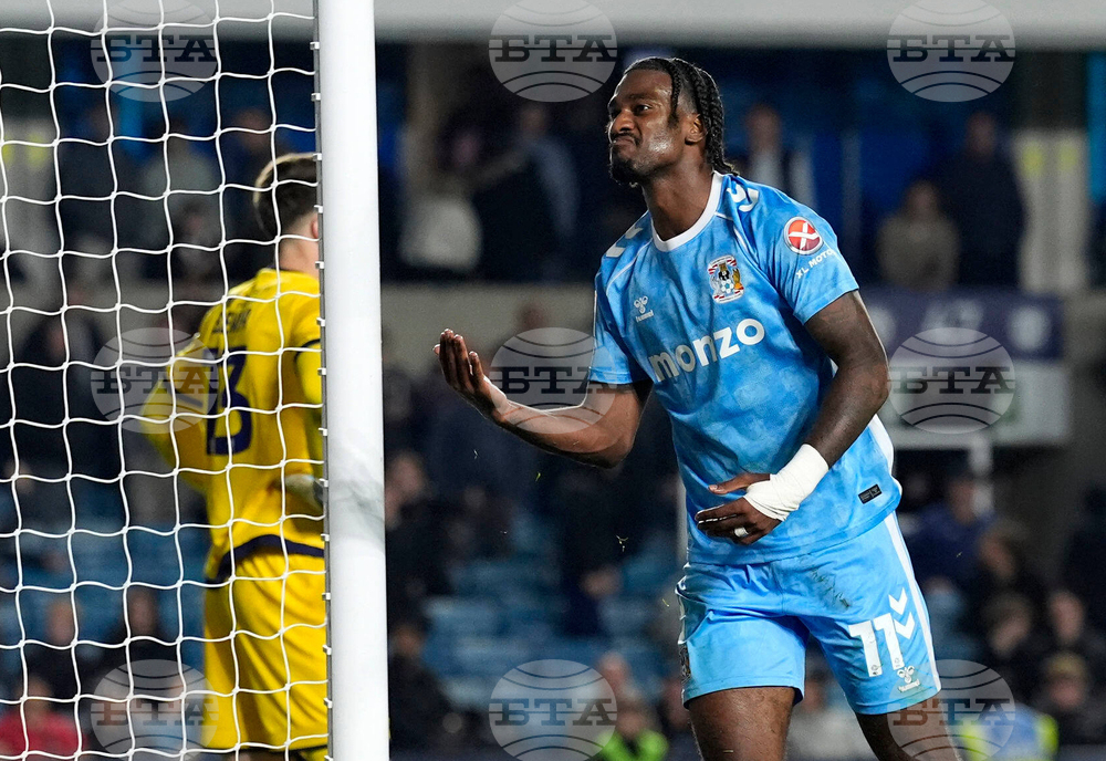 Coventry City's Tatsuhiro Sakamoto reacts to a missed chance during a Sky Bet Championship soccer match against Millwall, Wednesday, Oct. 2, 2025, at The Den in London, England. (Andrew Matthews/PA via AP)