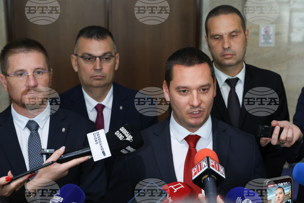 София (1 октомври 2025) Депутати от „Възраждане“ дават изявление за медиите в кулоарите на Народното събрание. На снимката: Никола Димитров.