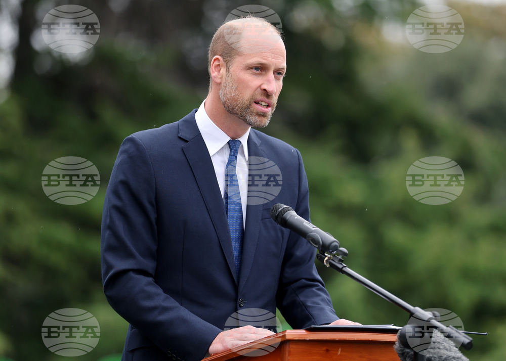 Britain's Prince William speak at the launch of the Global Humanitarian Memorial, in London, Wednesday, Oct. 1, 2025. (Chris Jackson/Pool Photo via AP)