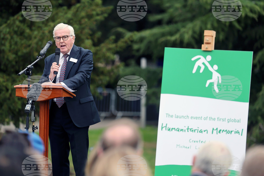 Sir John Holmes speaks at the launch of the Global Humanitarian Memorial, in London, Wednesday, Oct. 1, 2025. (Chris Jackson/Pool Photo via AP)