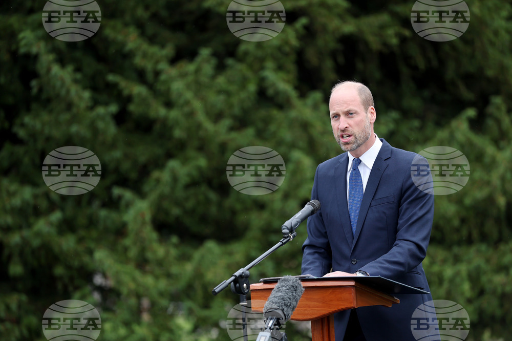 Britain's Prince William attends the launch of the Global Humanitarian Memorial, in London, Wednesday, Oct. 1, 2025. (Chris Jackson/Pool Photo via AP)