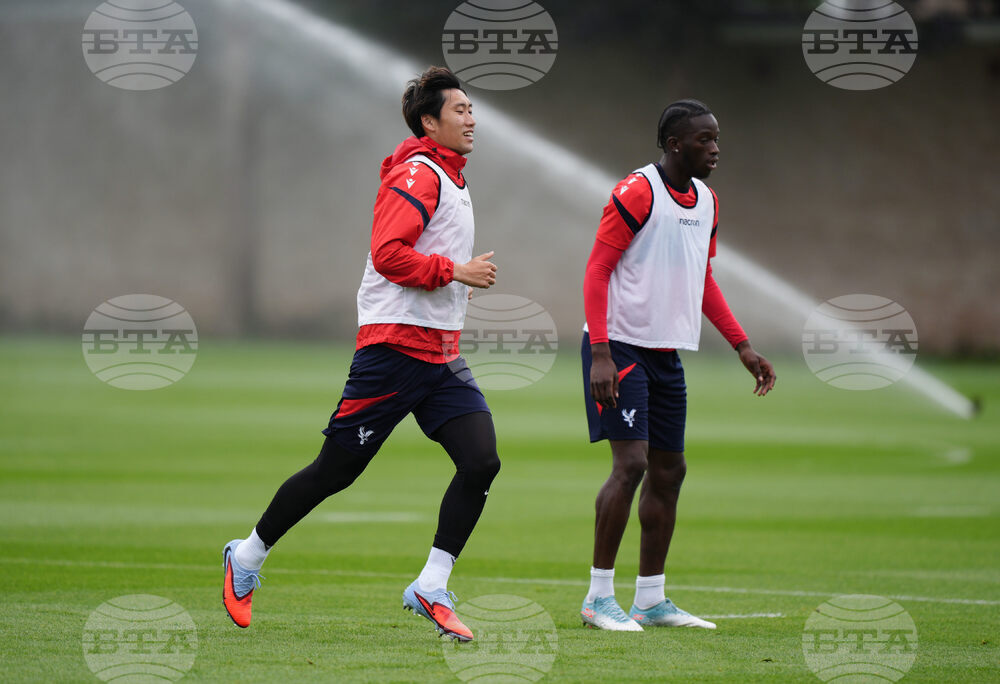Crystal Palace's Daichi Kamada during a training session at Crystal Palace FC Training Ground, Beckenham, England, Wednesday, Oct. 1, 2025. (Ben Whitley/PA via AP)