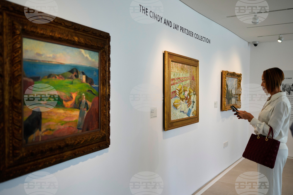 Visitors look at the collection of fine art paintings during a pre-auction exhibition in Abu Dhabi, United Arab Emirates, Wednesday, Oct. 1, 2025. These paintings by Vincent Van Gogh, Paul Gauguin, Frida Kahlo, Edvard Munch, Rene Magritte and Camille Pissaro are expected to sell for U.S. $1.5 million at an auction in New York in November 2025. (AP Photo/Altaf Qadri)