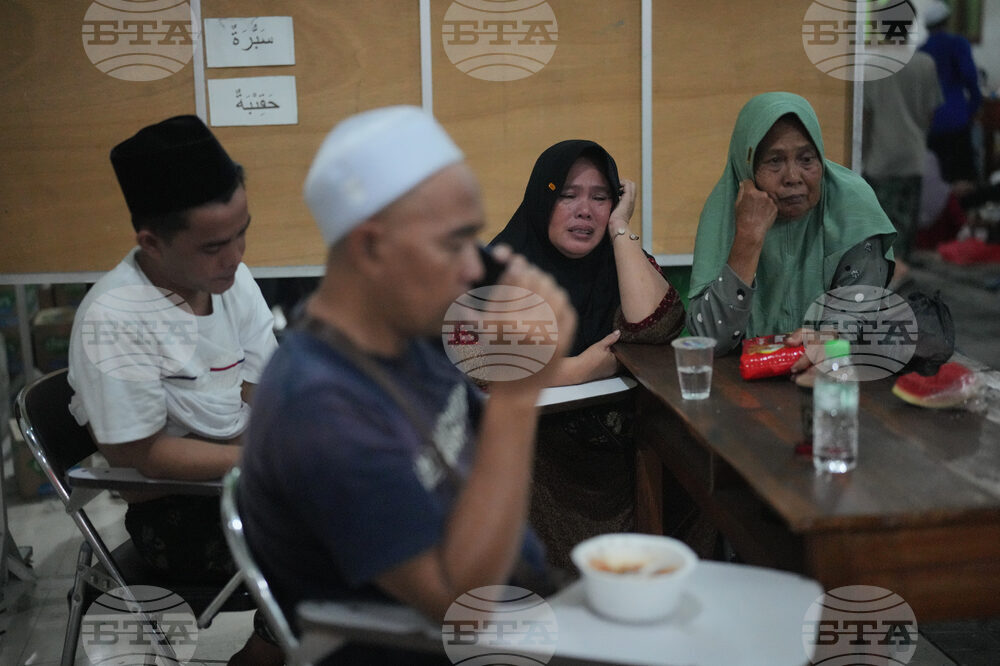 Family members of students wait as rescue works are underway for victims trapped under the rubble after a building under construction collapsed at an Islamic boarding school in Sidoarjo, East Java, Indonesia, Wednesday, Oct. 1, 2025. (AP Photo/Achmad Ibrahim)
